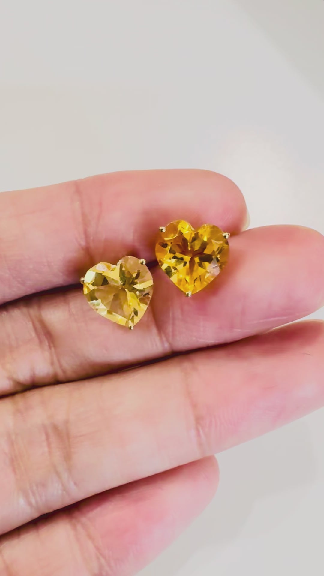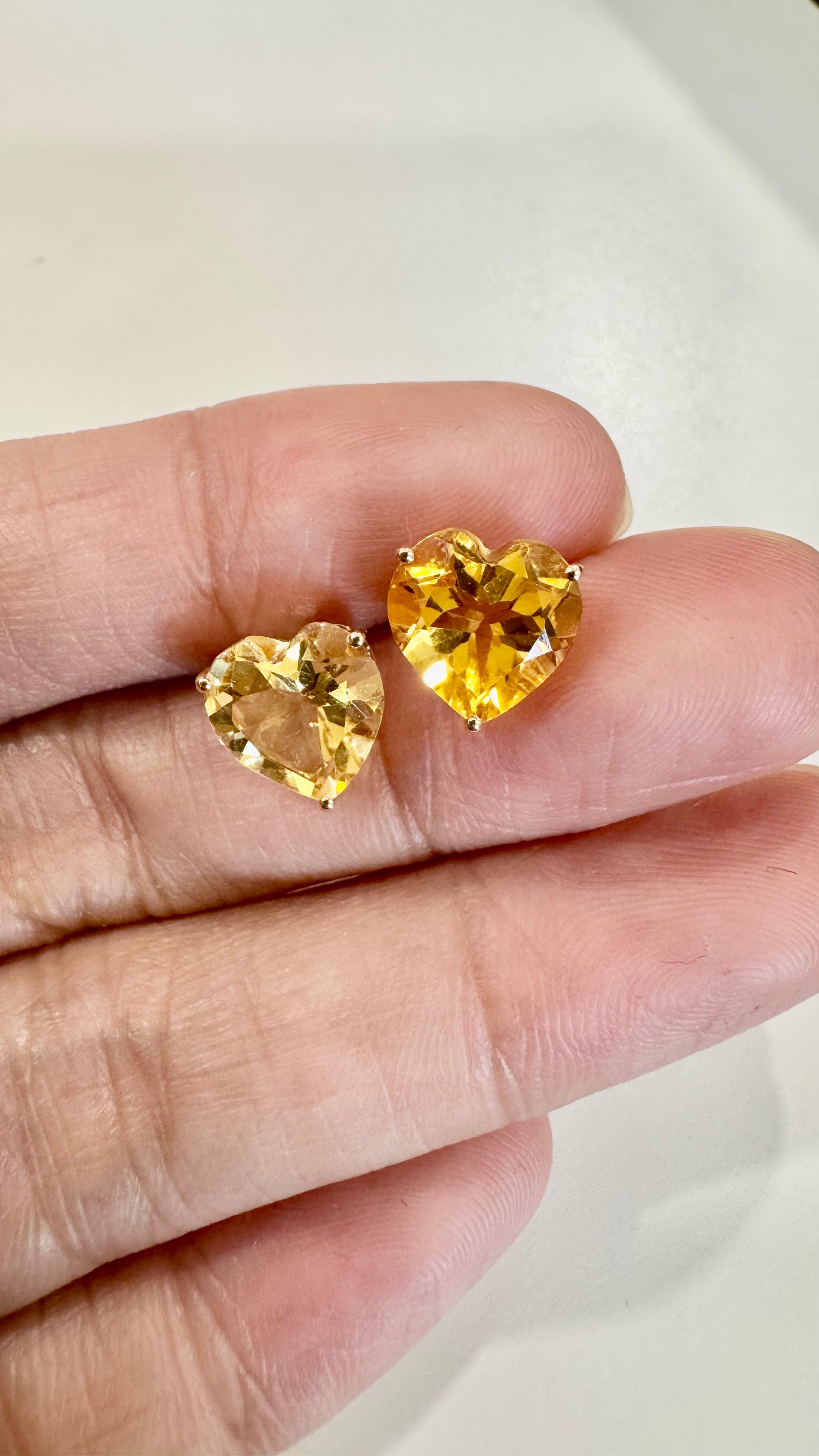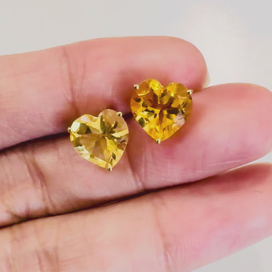 These radiant heart-shaped stud earrings feature natural citrine gemstones with a rich golden-yellow glow that feels warm, joyful, and luminous. With a total carat weight of 4.40 carats, the stones offer beautiful presence and sparkle while remaining refined and wearable.