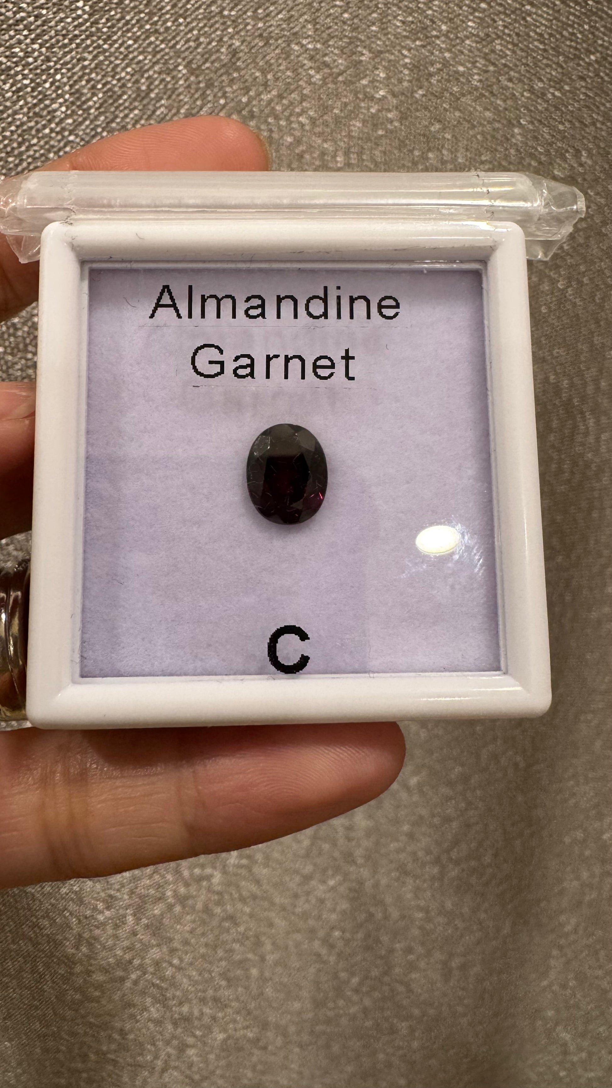 This natural almandine garnet features a deep burgundy to near-black red tone, characteristic of fine almandine material with strong body color and depth. Weighing 3.550 carats, the stone has a compact oval cut that emphasizes richness over flash, giving it a grounded, elegant presence rather than high brilliance.