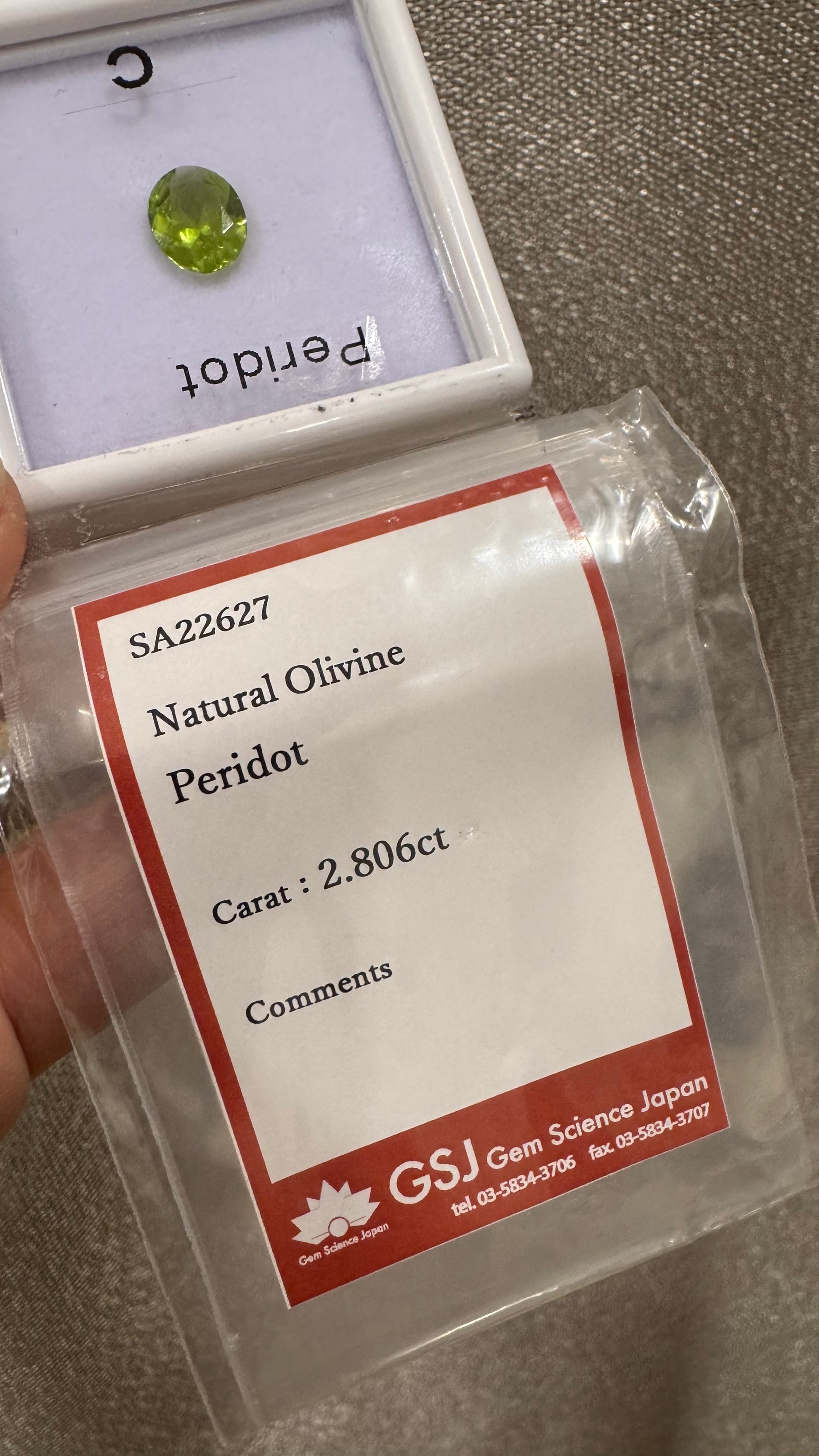 This natural peridot showcases a vibrant yellow-green hue with lively brilliance and a fresh, luminous presence. Weighing 2.806 carats, the stone is well-proportioned and beautifully cut to enhance its natural sparkle while maintaining a clean, elegant profile.