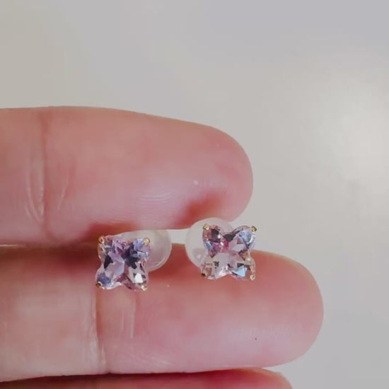 Pink amethyst is often associated with emotional balance, clarity, and a softer kind of strength—making these studs a meaningful everyday piece or a thoughtful gift. Their subtle color pairs beautifully with both gold and neutral jewelry, adding a touch of warmth without overpowering your look.