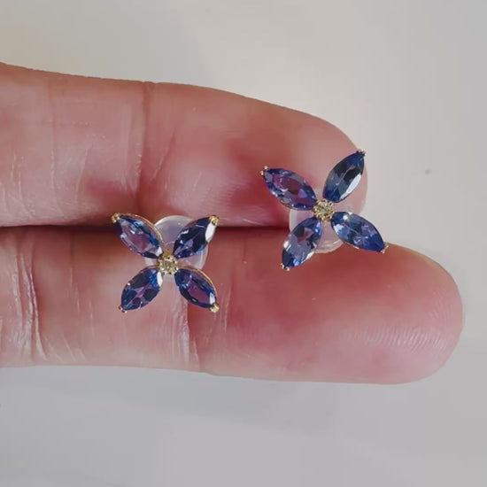 Tanzanite Flower Studs with Diamond